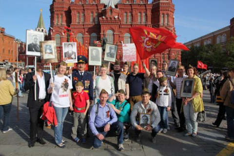 Атмосфера праздника и всеобщего ликования царила во время шествия в центре Москвы. То и дело раздавалось победное «Ура!». Участники акции пели песни военных лет, дарили друг другу счастливые улыбки. Ветеранам, участвовавшим в шествии, да и просто людям в военной форме, прохожие преподносили цветы и подарки. Акция приняла интернациональный характер. Вместе с потомками советских воинов, шли представители Франции, Польши, Сербии. Они тоже несли портреты своих ветеранов.