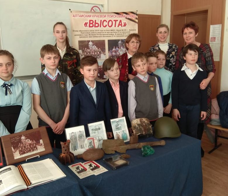 Постоянно действующая экспозиция поискового отряда «Высота» находится в 129 лицее города Барнаула.В Павловске выставка расположилась в местной общеобразовательной школе. Ребята с большим интересом рассматривали каски, винтовки, личные предметы красноармейцев, а также посмотрели фильм о поисковой работе.