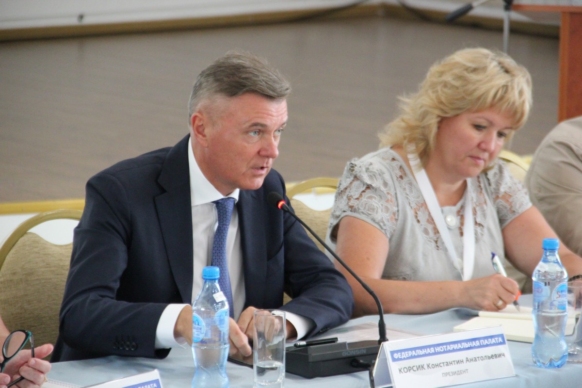 «За несколько месяцев после нашего последнего заседания произошел ряд важных изменений в законодательстве. Так, в мае Президент Владимир Путин подписал Федеральный закон о внесении изменений в Основы законодательства РФ о нотариате в части выполнения нотариусом функции эскроу-агента. Закрепление данной функции именно за нотариусом еще раз подтверждает, что нотариат приобрел статус востребованного и эффективного в современных реалиях правового института. В мае был также принят закон, регулирующий действия нотариуса при учреждении наследственного фонда и назначении его исполнительных органов. Соответствующие изменения были внесены в Основы законодательства РФ о нотариате.  Внесенные изменения призваны обеспечить эффективность и единство правоприменительной практики в рамках совершения нотариусами нового нотариального действия», – отметил Константин Корсик.