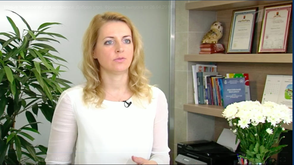 Сюжет доступен на сайте Первого канала: https://www.1tv.ru/shows/dobroe-utro/mezhdu-tem/novye-tehnologii-dlya-notariusa-dobroe-utro-fragment-vypuska-ot-26-04-2018