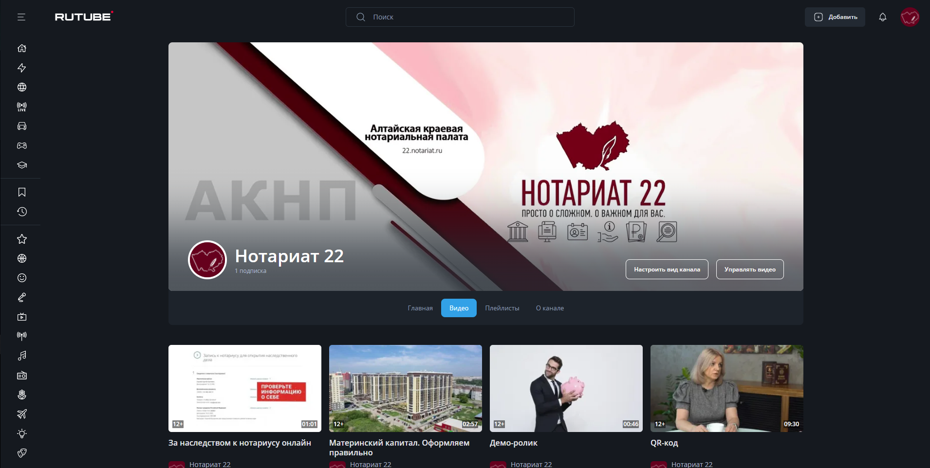 Видеоканал Алтайской краевой нотариальной палаты теперь представлен на российском видеохостинге Rutube.