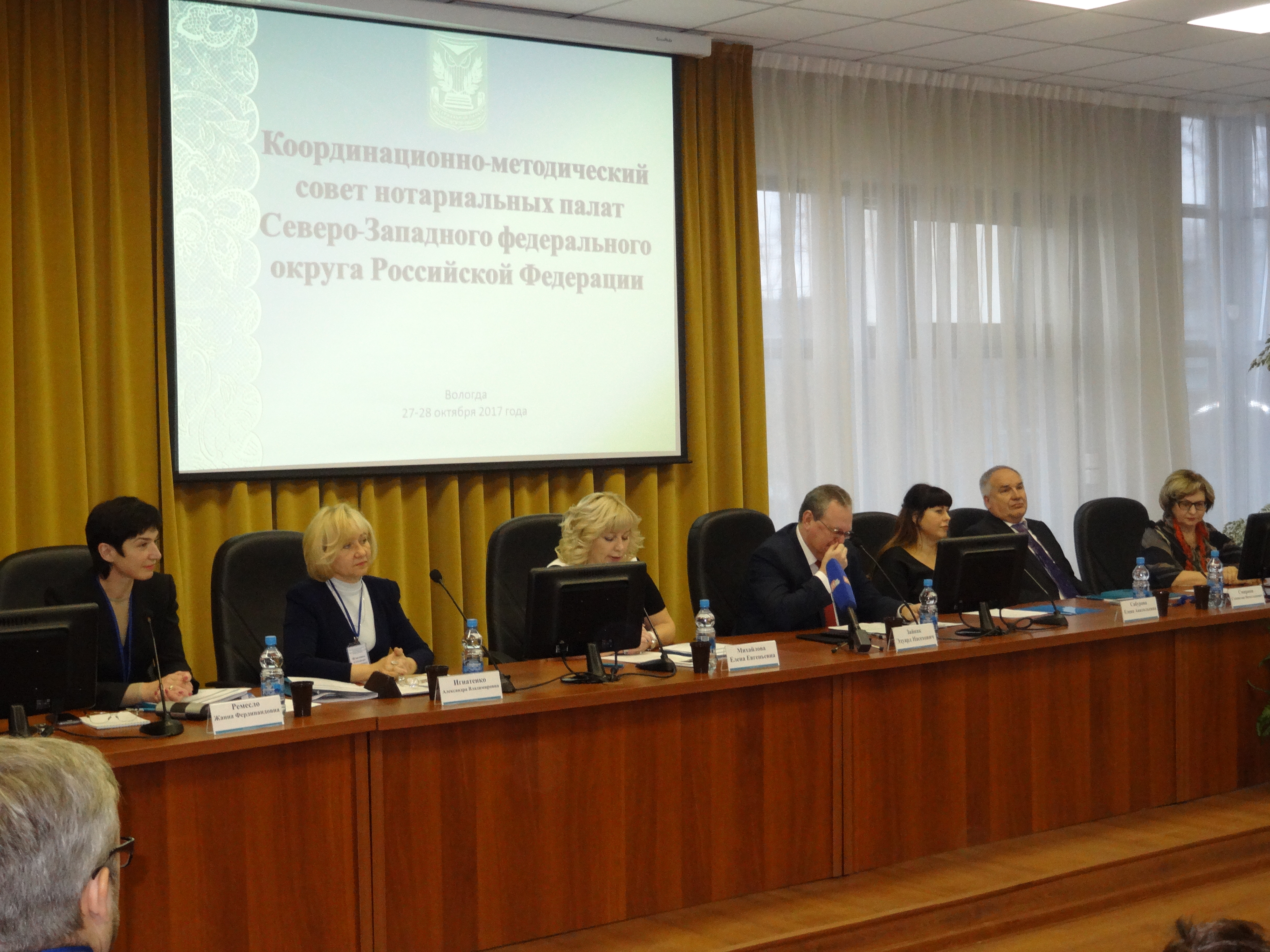 С 26 по 29 октября 2017 года на базе Нотариальной палаты Вологодской области состоялось заседание Координационно-методического совета нотариальных палат Северо-Западного федерального округа. В заседании приняли участие более 100 участников. Помимо представителей нотариального сообщества регионов СЗФО, мероприятие посетили их коллеги из Центрального, Сибирского, Приволжского и Южного федеральных округов. Со стороны Федеральной нотариальной палаты в заседании приняли участие: вице-президент ФНП Станислав Смирнов, член Правления ФНП Александра Игнатенко, заместитель начальника юридического отдела ФНП Антон Макаров, председатель комиссии по методический работе ФНП Алексей Рыбаков и председатель комиссии по информационным технологиям ФНП Олег Головатюк.