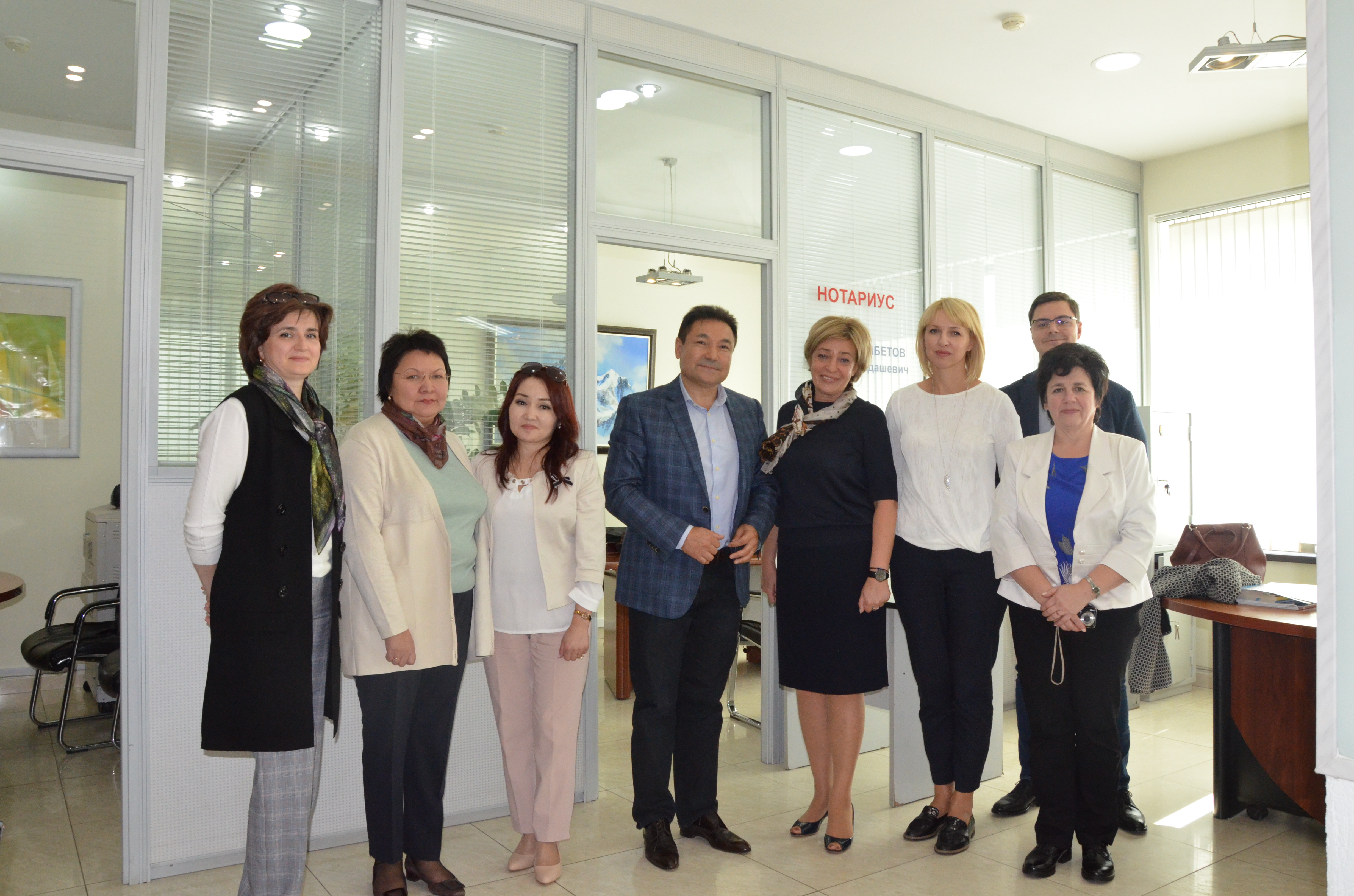Стажировка началась с посещения офисов нотариусов города Астаны. Нотариусы Туремурат Дильмухамбетов и Ажар Коргамбекова приняли гостей в своих конторах и ознакомили их с принципами работы электронного реестра и нотариальной базы ЕНИС.