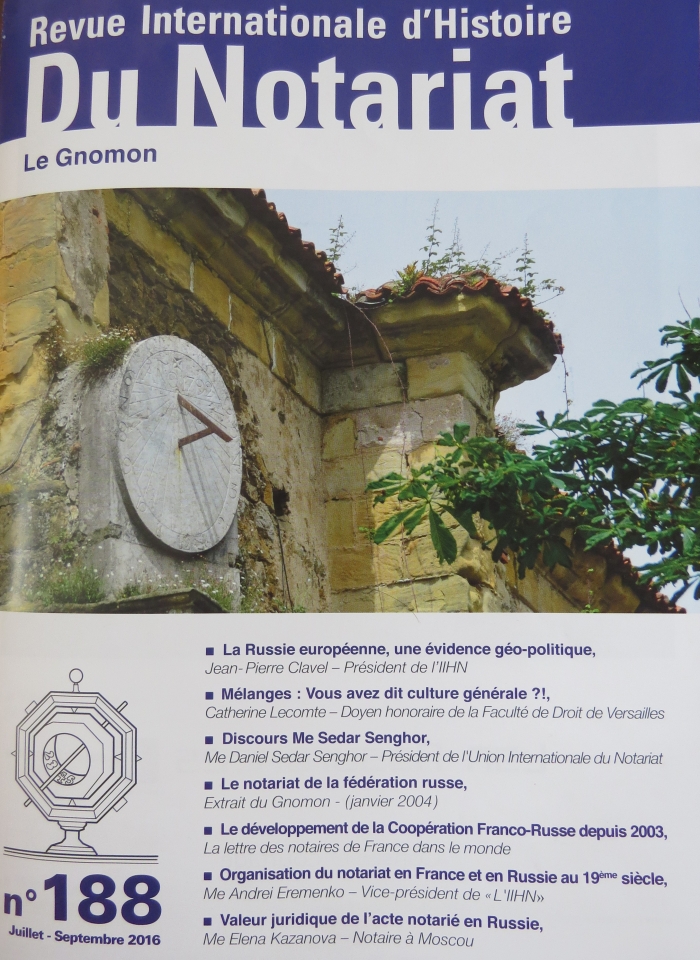 Известный в более чем 80 странах мира, научно-публицистический журнал «Международного Института Истории Нотариата» - «Le Gnomon» выпустил специальный номер, посвященный 150-летнему юбилею российского нотариата. Это первый случай, когда темой всего выпуска авторитетного профильного зарубежного издания стал институт нотариата в России, его становление и современное состояние.