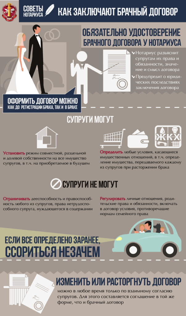 Многим парам, особенно в период пылкой влюбленности кажется, что заключение брачного договора — это нечто прозаическое, принижающее их чувства, и, следовательно, приближающее развод. Однако на самом деле брачный договор даже укрепляет чувства. Ведь нередко именно имущественные споры становятся камнем преткновения для супругов, а если все определено заранее — и ссориться незачем.
